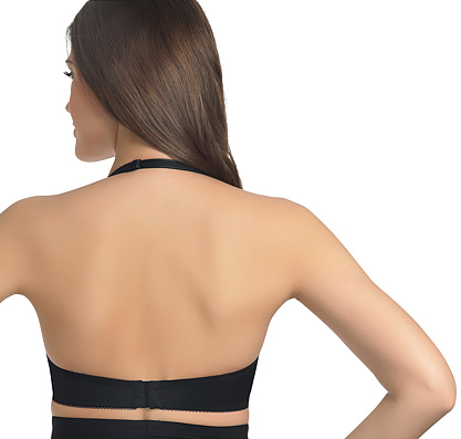 Wielofunkcyjny biustonosz pozwala na przepięcie ramiączek na kilka sposobów: wokół szyi, krzyżowo na plecach lub z zapięciem obniżonym poniżej linii talii.